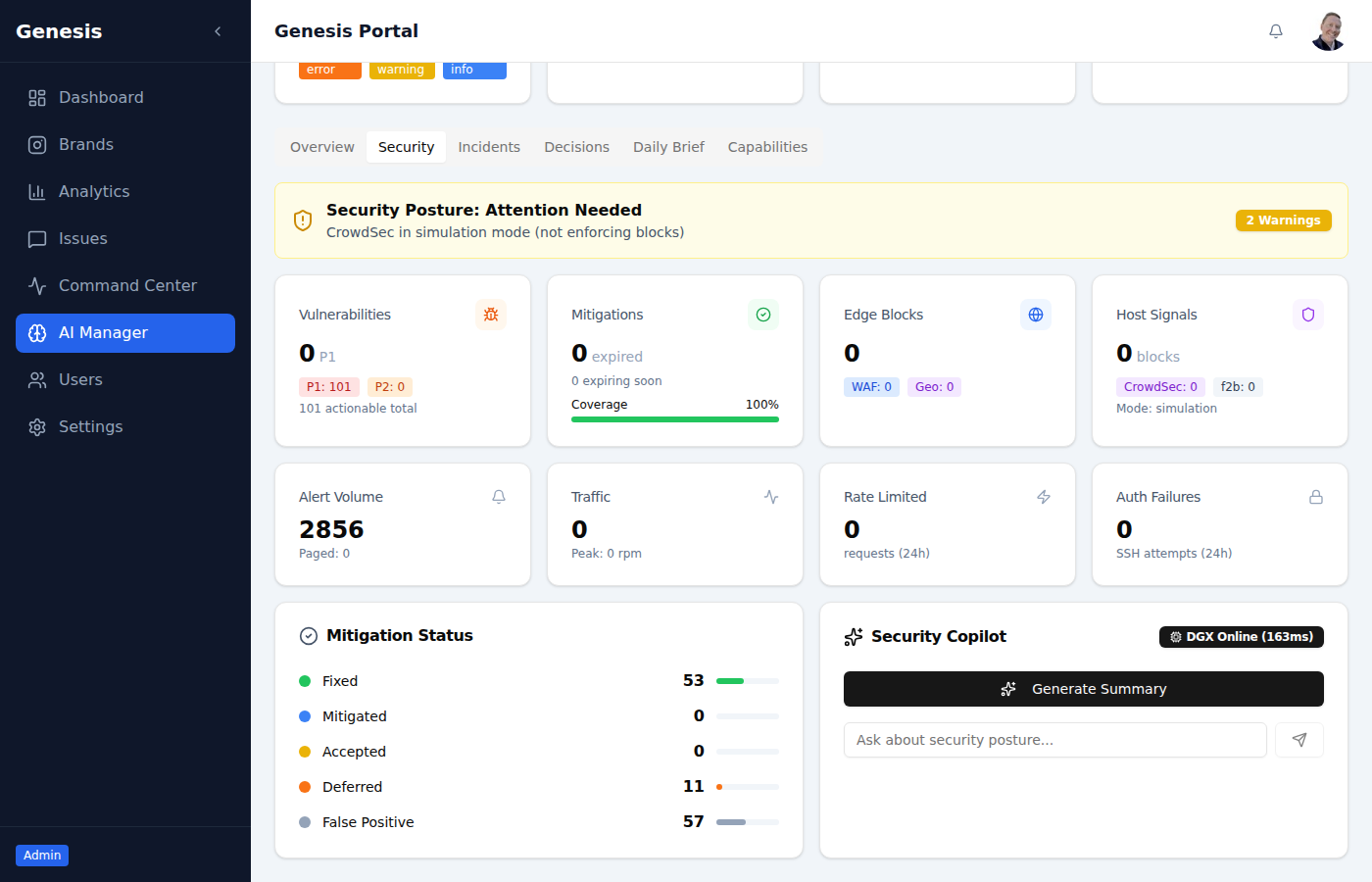 Architecture aligned with compliance frameworks. Certification status varies by deployment.